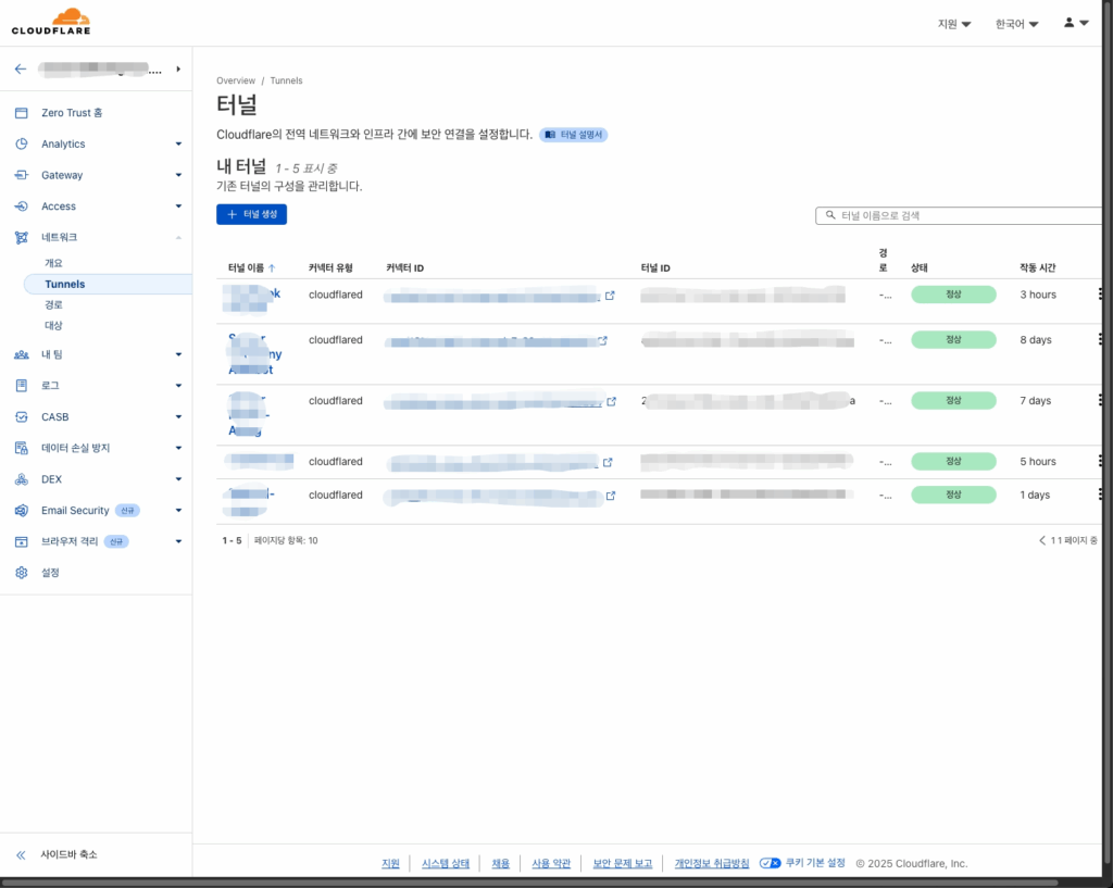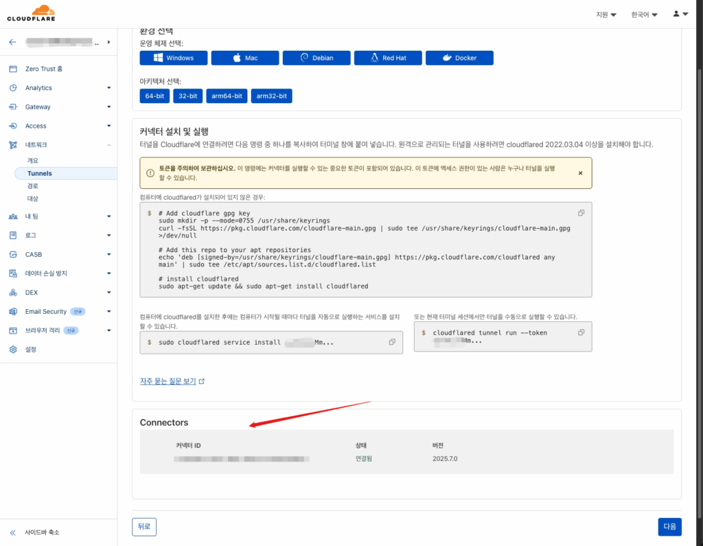 3. 터널 생성 -> 유형선택 : Cloudflared -> 이름 지정 -> 저장